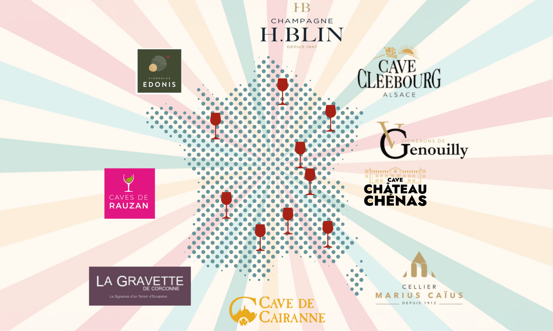 9 caves coopératives issues de 9 régions viticoles de France se déplacent ensemble dans chaque cave partenaire pour venir à votre rencontre, vous faire découvrir leurs terroirs, déguster leurs vins et vous parler de leur passion. Vous trouverez près d’une centaine de vins différents dans ce tour de France viticole.